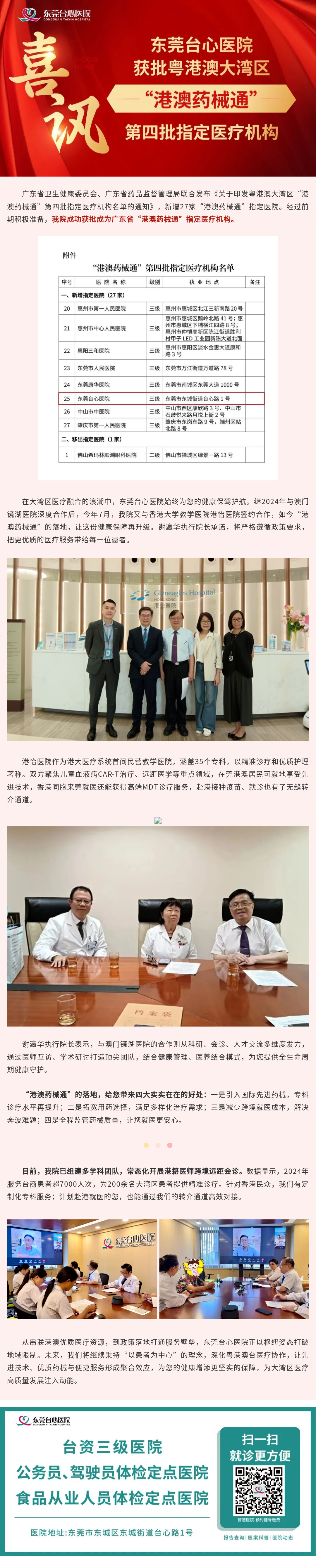 喜讯|东莞台心医院获批粤港澳大湾区“港澳药械通”第四批指定医疗机构,您的健康有了新守护!